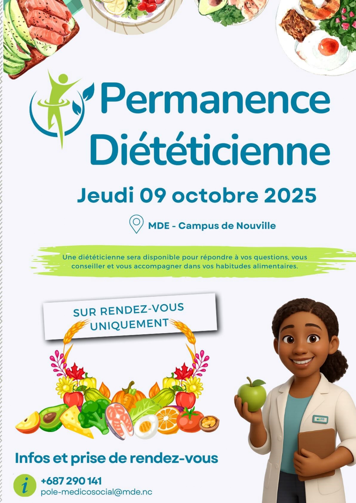 Agenda Date : Horaires : SANTÉ ET SOCIALEVIE ETUDIANTE PERMANENCE DIETETICIENNE « JEUDI 09 OCTOBRE » Partager < Dans la même catégorie Santé bucco-dentaire [+]RESTAURATION NOUVEAUX HORAIRES SUNSET CAFET - MDE[+]SOIREE D’INTEGRATION 2025[+]